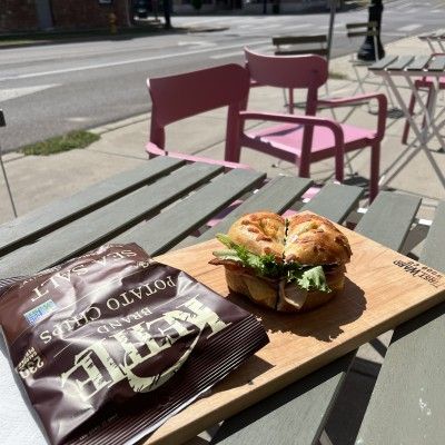 In addition to local artisan products, produce, and flowers, The Farmer's Collective has a tasty ready-to-eat menu of wine, sandwiches, small bites, and cheese boards that can be enjoyed on the outside patio of tables and chairs.