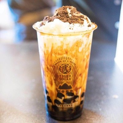 Tiger Sugar began its boba entrepreneurial journey in Taichung, Taiwan in 2017. What makes Tiger Sugar unique from other boba shops is their one-of-a-kind "tiger stripes" that are infused into all of their drinks with hand-poured syrups.