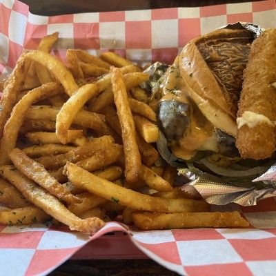 Other menu items include comfort foods such as quesadillas, loaded fries, wings, egg rolls, and a variety of milkshakes.