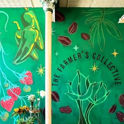 While the Two Little Buds storefront is open by appointment only, their sister store, The Farmer's Collective, welcomes everyone for farm fresh flowers. Their shop located off Main Street is beyond adorable. Fresh cut flowers and local goods sit atop crisp white shelves, while a vibrant mural welcomes visitors to this little shop.