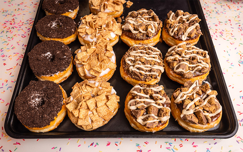 Bismarck Donuts & Coffee sells a wide variety of donuts, including familiar favorites, custom flavors and seasonal crafted donuts, including designs for holidays. They also offer a full coffee menu with specialty drinks. Outside of donuts and coffee, Bismarck sells biscuits and gravy, breakfast sandwiches, and sausage rolls.