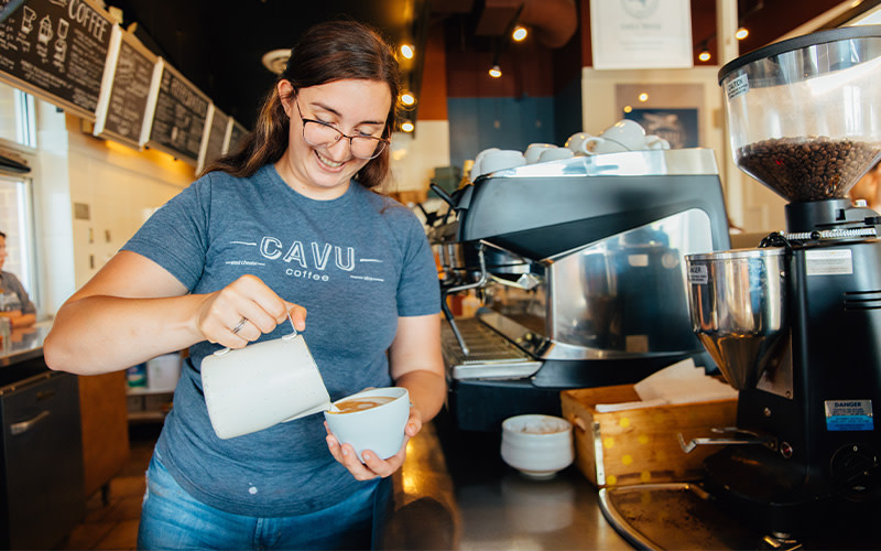 Cavu Coffee is a full service coffee boutique with drive-thru service. Cavu Coffee offers quality teas, smoothies, and a variety of fresh baked treats. The atmosphere of Cavu is cozy and inviting, and a great place to relax, or grab a beverage on the go!