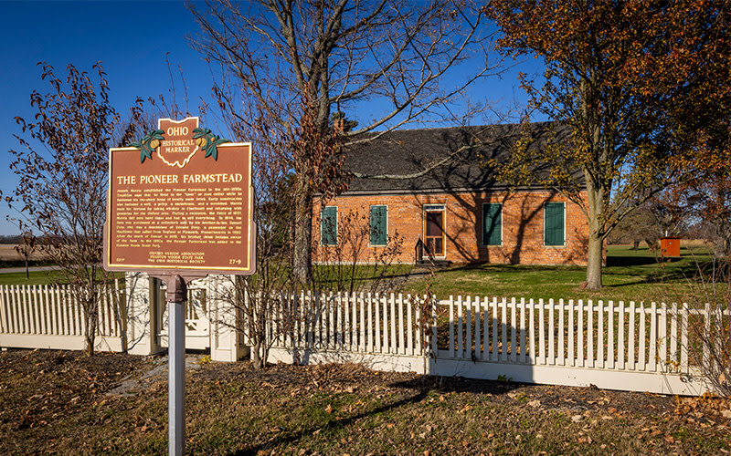 The Pioneer Farm Museum property has three buildings: the 1836 Doty Home, the former Oxford Township Trustees' Building, and an 1840s dairy barn moved from Trotwood, Ohio. The house was built by Joseph Morris in 1836. He lost the property to his creditors in the 1840s and it was purchased by his brother-in-law, Samuel Doty. Doty and his family lived there until 1859, when the property was sold to Samuel Doty's brother, Jesse Doty. It remained in Doty hands until the 1870s, followed by a succession of owners until the Van Ausdall family turned the property over to Hueston Woods State Park in 1950. The Oxford Museum Association opened it as a house museum in 1959. The home contains late nineteenth century furnishings, pottery, porcelain, quilts, and other textiles.