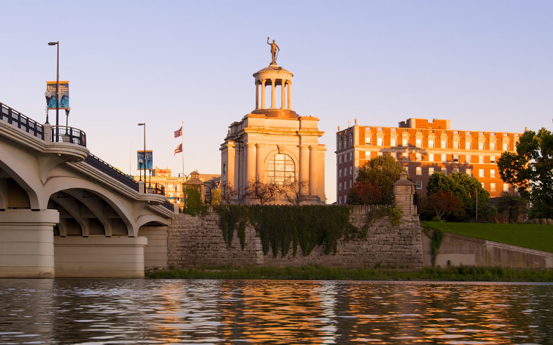 This Butler County monument stands proudly at the 1790s site of Fort Hamilton, right along the banks of the Great Miami River. It honors those who have fought and served for our country as well as those who first settled in Butler County. Notable features of the monument are gorgeous stained glass windows and two large displays that honor the service of the men and women during the Civil War. Other military displays are housed within the monument. On the temple dome stands a 17 foot, 3500 pound bronze statue created by Rudolph Theim, titled "Victory", representing a Civil War private "Billy Yank" raising his cap in celebration of victory in the 4 year war.